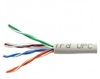 Cable de red Cat5E en su caja debidamente rotulada por la fábrica. Cable construído bajo los estándares . Permite la transmisión de datos y energía eléctrica simultáneamente por el cable.