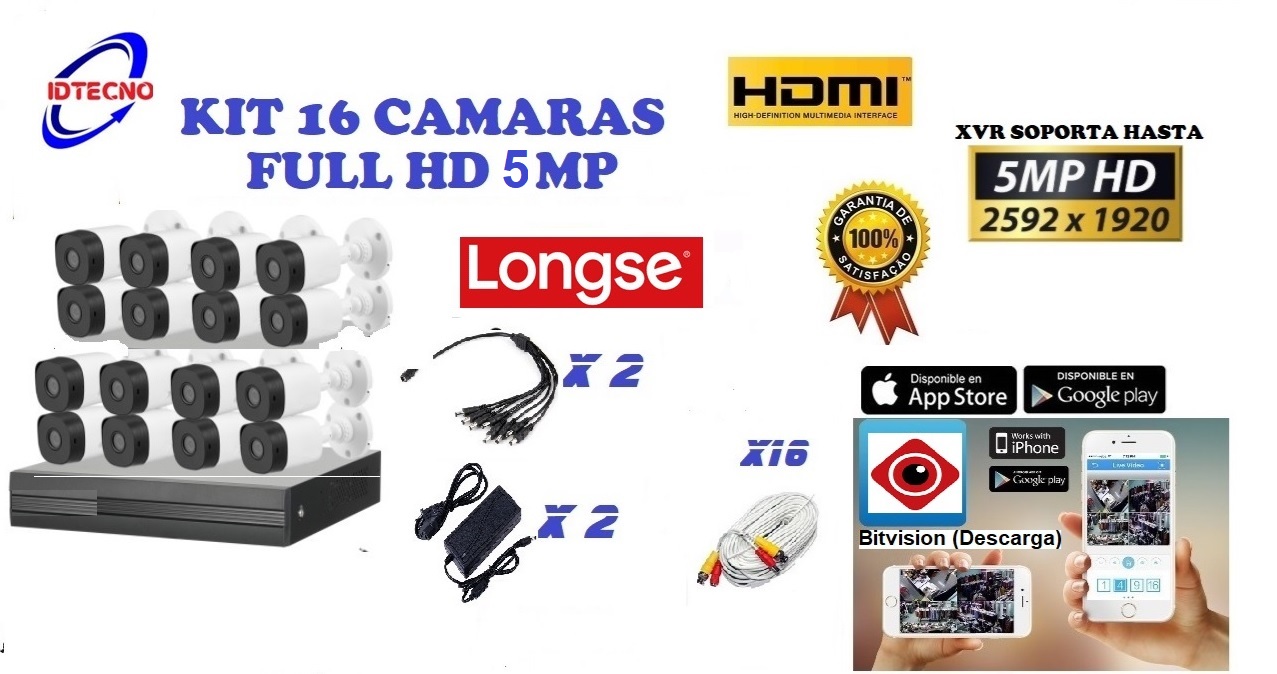 Kit 16 Camaras Bala Plastica 5 MP OPCION 4K 8MP LITE 2,8MM LONGSE CON INSTALACION