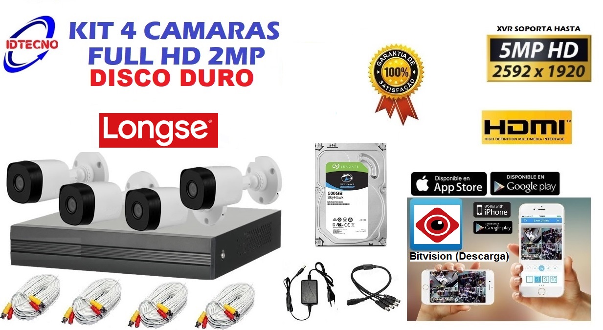 - 4 CAMARAS BALAS O DOMO PLASTICA LONGSE 2MP 2,8MM 20 MTS VISION NOCTURNA